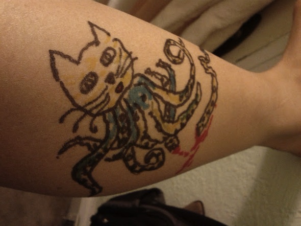 2. Bad Reagrets Tattoo Parlor. Exactly what it sounds like. The truck is lined with drawings of sample Bad Tattoos for inspiration. Full of incipient regret, I shuddered as a mustached man tattooed a bleeding “Octo-Cat” in the worst possible location (my calf), while a hideous buzzing emanated from his instrument.