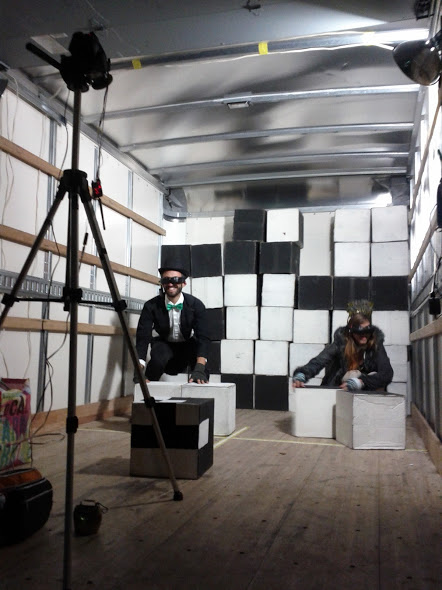 After creating a Tactile Maze for one of last year’s Night Markets, I’ve spent some time thinking about what makes for a good box truck experience. The most enjoyable trucks seem to be ones that are highly interactive, engage several participants at a time, and require no more than 3 minutes to complete: Pain Pong is a canonical example. It may be best if audiences can look inside the truck and have a sense of what’s happening, since that defuses the anxiety of waiting in line. If the truck has to be closed off, then some other approach should be taken to enable audience participation. A good example of this is the “Smash Truck” from last year — organizers asked the audience riddles, and those who answered correctly were permitted to enter the truck and smash large quantities of china. Finally, while not strictly necessary, it’s nice to have at least one truck that gets the entire community involved, like this year’s Elsewhere truck or last year’s Mission: Impossible truck.